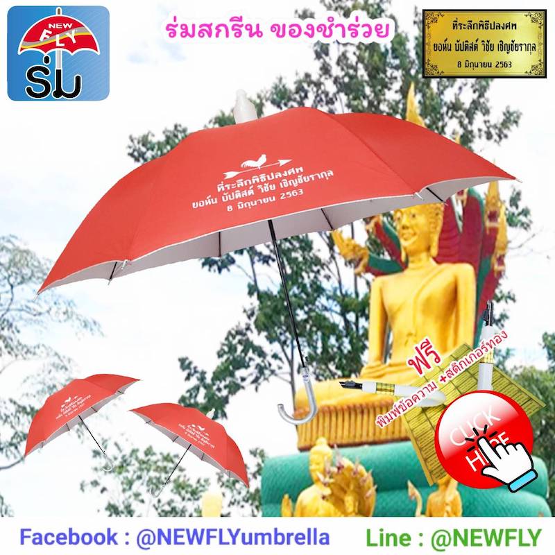 ร่ม ของแจกงานศพ ของชำร่วย ราคาถูก ร่มยาว ร่มกระบอก งานฌาปนกิจศพ ฟรีสติกเกอร์ทอง พิมพ์ข้อความ หรือ สกรีนร่ม บริการออกแบบให้ฟรี ร่มนิวฟลาย