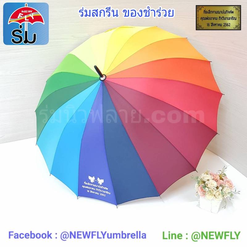 ร่ม ของชำร่วย งานศพ สั่งร่ม สายรุ้ง ร่มพรีเมี่ยม ร่มสกรีน ข้อความ ไว้อาลัย ร่มยาว ตอนเดียว แข็งแรง ทนทาน