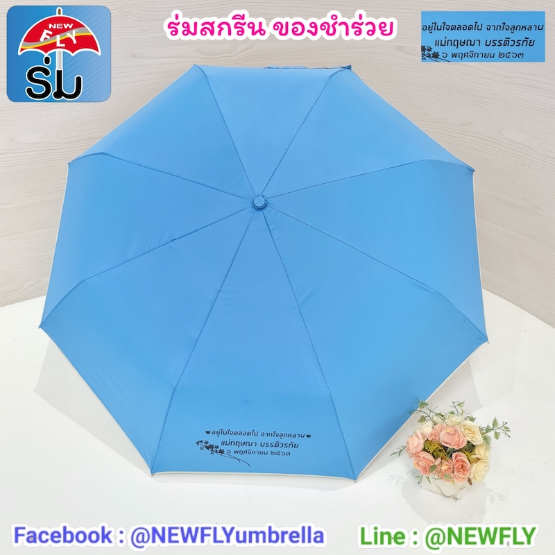 ร่ม ของชำร่วย ร่มพับ ออโต้ เปิดอัตโนมัติ แจกร่ม ร่มสกรีน ข้อความ ฟรีค่าบล๊อค สั่งซื้อร่ม ไม่มีขั้นต่ำ ร่มนิวฟลาย ออกแบบ ข้อความบนร่มได้เอง