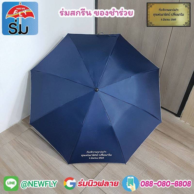 ร่ม ของชำร่วย ยี่ห้อ นิวฟลาย ที่นิยม นำไปแจก ในงานศพ รับฟรี สติกเกอร์ทอง